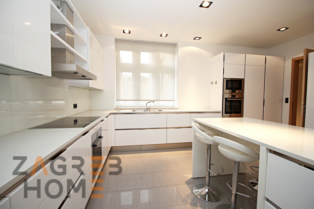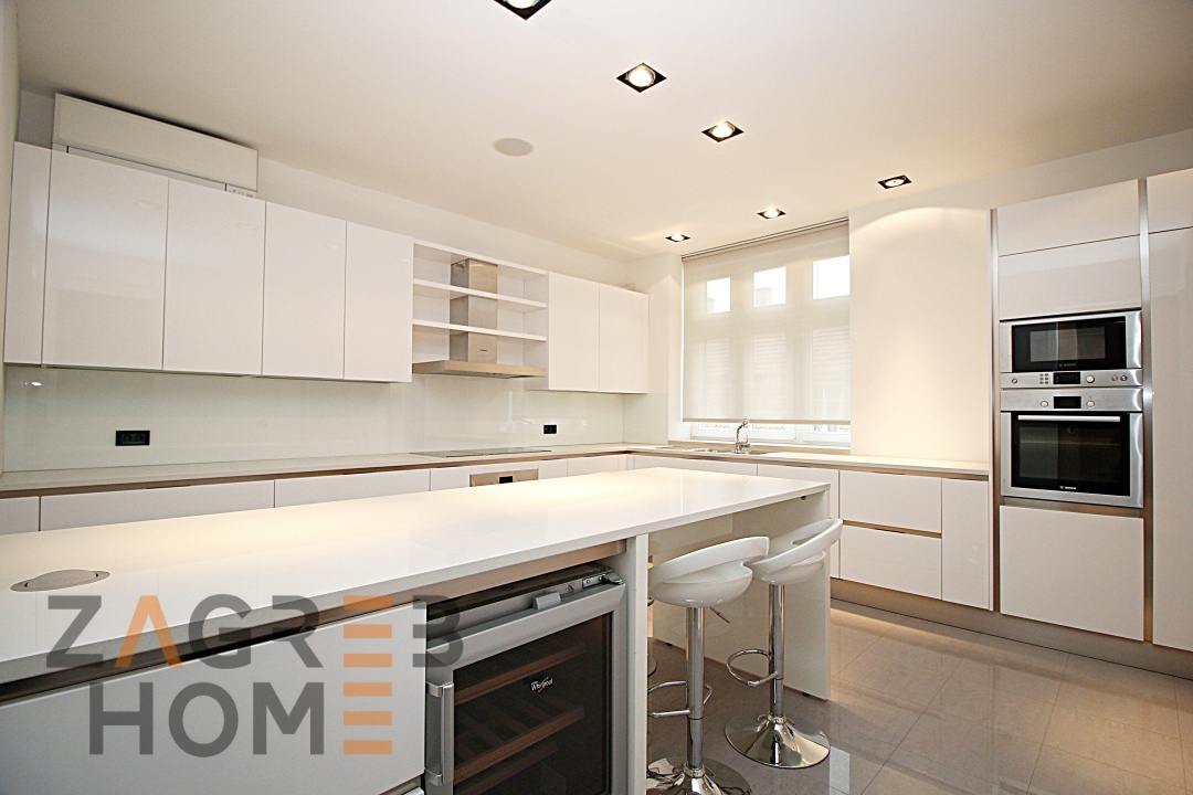 Luxury, spacious, modern apartment surface 220 m2 with two balconies is situated on the 2nd floor of a smaller residential building in the center of the city (lift).