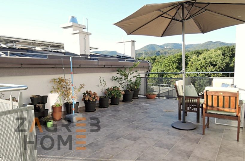 Upper level (attic): hall, bedroom, bathroom, terrace and big roof terrace.